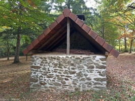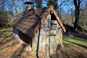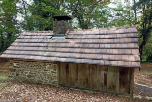 La particularité de ce four du XIXème siècle est qu’il est composé de deux parties. Le four est en pierres et en briques tandis que l’abri servant d’entrée est en bois. L’ensemble est recouvert en tuiles. Notons à l’arrière du four une petite pièce où séchaient les fagots à chauffer le four.