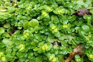 La dorine à feuilles opposées forme des tapis de 5 à 10 cm de hauteur et affectionne particulièrement les zones de suintement et de source ou les bordures de ruisseau. On la nomme également cresson doré car ses étamines jaunes contrastent avec le vert du reste de la plante.