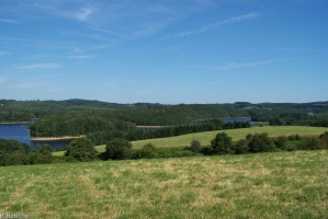 Mis en eau en 1946, ce lac de barrage marque le passage du plateau de Millevaches avec ses ruisseaux serpentant dans des fonds humides tourbeux vers des reliefs plus marqués où les cours s’encaissent. Il est le premier ouvrage hydro-électrique amont sur la Vézère.