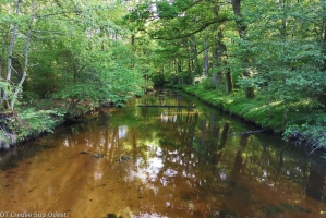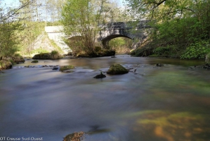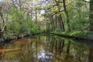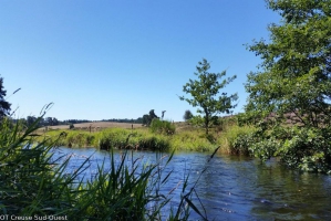 Panorama sur la vallée de la Maulde, un paradis pour les pêcheurs de truites, de carpes, de brochets. La Maulde prend sa source sur le Plateau de Millevaches et alimente le lac de Vassivière. Son eau particulièrement limpide est propice au développement des herbiers de callitriches. Avec un peu d'attention vous pouvez observer le cingle plongeur qui vole très rapidement au ras de l'eau. Cet oiseau de la taille d'un merle se nourrit d'insectes qu'il va chercher dans l'eau sous les pierres.