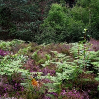 Vous avez ici un exemple de lande à bruyères, milieu qui était, au XIXème siècle, prépondérant dans le paysage des gorges du Thaurion. Aujourd’hui, il s’agit d’une relique préservée et entretenue pour ses qualités en matière de biodiversité. Elle est essentiellement constituée de callune (une des espèces de bruyères) et d’ajonc.