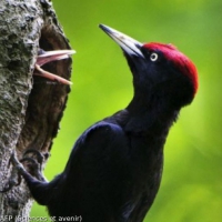 Le pic noir mesure 45 centimètres, c'est le plus grand Pic d'Europe au plumage noir uni. Le mâle porte une calotte rouge et la femelle une tache rouge à la nuque. Son vol est lourd et un peu onduleux.Il fréquente les futaies de conifères et de hêtres des régions montagneuses. Il creuse une très grande cavité à orifice ovale dans un fût d'arbre, parfois à très grande hauteur.Le pic épeiche mesure 22 centimètres et se distingue par un dos noir avec de grandes tâches blanches sur les ailes. Le dessous est blanc non rayé, le rouge sous la queue est coupé net. Le mâle arbore une tache rouge à la nuque, absente chez la femelle. Il s'alimente rarement à terre et vit dans tous les milieux arborés.