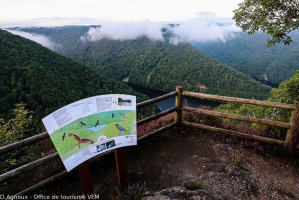 Surplombant le ruisseau de la Sombre et la retenue du Chastang, le belvédère Roc grand offre un panorama exceptionnel.Falaises et rochers environnants offrent le gite pour deux oiseaux habitués de ces milieux rupestres, le Faucon pèlerin (Falco peregrinus) et le Grand corbeau (Corvus corvax).
