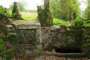 Perdue dans un étroit chemin, à l’abri des regards, cette fontaine-abreuvoir rappelle celle du bourg d’Alleyrat avec ses usages multiples à partir d’une seule source.