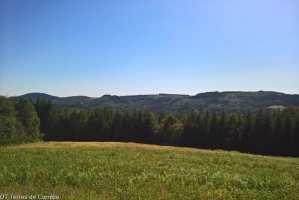 Il s’agit du point culminant de ce circuit qui permet d’admirer ce panorama sur le Massif des Monédières.Vaste d'environ 60 km², le massif des Monédières est l'une des sept entités paysagères rattachées au Parc Naturel Régional de Millevaches en Limousin. Ce territoire granitique préservé est situé sur les contreforts du Massif central, au sud-ouest du fameux plateau de Millevaches. Ses landes sèches sont classées en zone Natura 2000, synonyme de site exceptionnel pour sa flore et sa faune.L’évolution des lieux est expliquée sur le panneau n°8.