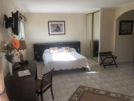 Superbe villa climatisée "La Coloniale", située à 9 km de Brive et à 5 km des axes autoroutiers A89 et A20. 5 chambres avec lit en 160, TV et ADSL. La Provence, très grande suite de 50 m2- L'Azur et la Perle, 2 suites de 39 m2 - La Prune suite de 35 m2 et l'Ivoire, chambre de 22 m2. Tables d'hôtes SUR DEMANDE du lundi au samedi (pas de possibilité le dimanche) à l'intérieur ou en terrasse.
