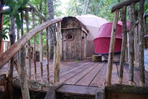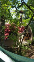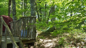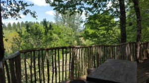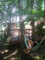 En forme de demi-lune et sa structure en étoile, la cabane de la Séléné vous séduira par son originalité. De sa terrasse sur pilotis de plus de 80m2 dans la forêt, vous pourrez admirer la vue sur la clairière et la voie lactée la nuit. Vous serez au cœur de la faune locale et peut-être aurez vous la chance d’apercevoir un renard, un chevreuil ou un écureuil… La journée, vous pourrez vous reposer dans les hamacs accrochés dans les arbres et le soir jouer près du poêle. 1 chambre 2 lits 140 dans la cabane d'octobre au 1er mai (4 personnes). 1 lit 140 sup dans la bulle à l'extérieur de mai à fin septembre (6 personnes)