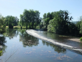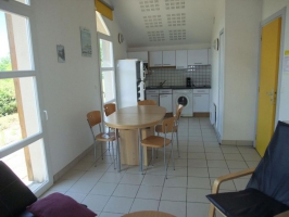 Pavillon de plain-pied, récemment construit sur un coteau à proximité d'une rivière et comprenant : entrée, séjour/coin cuisine/coin repos avec canapé convertible, 1 chambre 2 pers, salle d'eau/wc, 1 2 pers. avec salle d'eau, wc privatifs. Grand terrain non clos de + de 60a. commun aux gites de groupes voisins. Chauffage. électrique. Terrasse avec vue sur la rivière.. Charges non comprises.