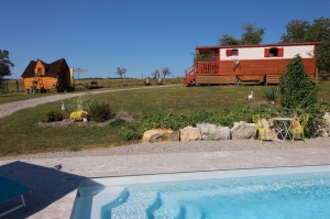 On se sent tellement bien ici ! Un petit coin de paradis dans cette jolie roulotte Comtoise. Depuis la terrasse couverte en bois, régalez-vous par la vue, le calme. La roulotte comprend : terrasse avec escalier (4 marches), espace cuisine, un canapé lit gigogne (2 lits en 80/190), un espace nuit en alcôve (avec 1 lit 2 personnes en 140/190). Salle d'eau avec douche et WC. Mise à disposition d'une cabane en bois de forme atypique (non chauffée), proposant un lit double (140/190) pour les personnes logeant dans la roulotte. Piscine de 4 X 7 m, chauffée et sécurisée, ouverte du 1er mai au 30 septembre (selon météo), à partager avec les propriétaires et les locataires du gîte situé sur la propriété. Terrain de pétanque, table de ping-pong, panier de basket. Salon de jardin et barbecue. Draps fournis. Charges comprises. Chauffage électrique. Internet WiFi. La roulotte peut également être louée avec le gîte, pour un total de 8 personnes (contacter la propriétaire).