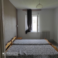 À 3 km du village, en pleine nature, appartement aménagé au 1er étage de l'ancienne école rénovée : cuisine, séjour/coin salon, 1 chambre (2 lits 1 personne), 2 chambres (1 lit 2 personnes), salle de bains, WC. À disposition : lave-linge commun avec le gite situé à l'étage. Terrain en pelouse non clos autour de la maison. Chauffage fuel. CHARGES COMPRISES. Comprend un autre gîte au rez-de-chaussée 70G4658 pour 6 pers.Options : Forfait ménage : 50€ - Draps lit 1 pers. 7€ - Draps pour lit 2 pers. 14€