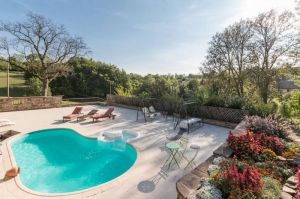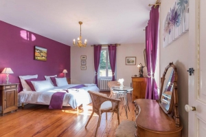 Entrée par portail et une belle allée centrale fleurie, le manoir de Marie est une magnifique demeure, au calme, du début du 20ème siècle, au cœur d'une grande propriété, où se trouvaient d'anciennes distilleries. Dès le seuil, une chaleur, un esprit. Cette demeure de caractère, vous invite à vous sentir bien, par ses grandes pièces, sa luminosité, les belles vues sur l'étang privé, sur le parc et son standing de très grande qualité. La décoration conjugue avec élégance tous les styles. Chaque meuble et chaque objet possèdent une âme… Le tout créant cette ambiance particulière d’une luxueuse sérénité ! Au rez-de-chaussée : cuisine équipée, salon, salle à manger-salon, WC avec buanderie. À l'étage: 5 chambres, 2 salle d'eau (dont une avec WC), 1 salle de bain, 1 WC indépendant. Grande terrasse semi-ouverte avec barbecue et plancha, avec vue sur l'étang privé (pêche). Détendez-vous au bord de la piscine (non chauffée mais couverte avec un abri telescopique ), à l'ombre de la tonnelle ou des arbres, une table de ping-pong, un local accueil vélo (prêt de vélo) et pêche. Internet. Draps et lits fait à l'arrivée inclus, linge de toilette inclus. Chauffage aérothermie et cheminée avec insert bois. Charges non comprises (chauffage inclus selon certaines périodes). Label Accueil Vélo.