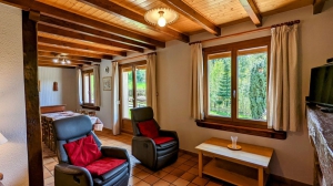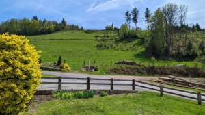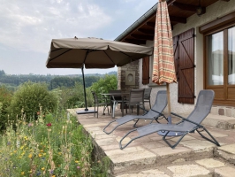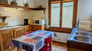 À 2.5 km du village en pleine nature, maison indépendante comprenant au rez-de-chaussée : cuisine, séjour/coin salon, salle d'eau avec douche, WC. 1er étage : 2 chambres communicantes : 1 chambre (1 lit 2 personnes 140x190 cm). 1 chambre (1 lit 2 personnes 130x190 cm, 1 lit 1 personne 90x190 cm, 1 lit bébé). Terrain non clos en pelouse arboré et fleuri. Chauffage bois et électrique. CHARGES COMPRISES. Deux transats pour l'extérieur, salon de jardin, et barbecue.Possibilités de garage pour vélos ou motos. Possibilité box et pâturages pour chevaux. Matériel bébé à la demande : lit + chaise haute + baignoire.