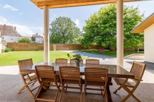 Découvrez le Gîte des Capucins, une maison moderne de plain-pied, lumineuse et apaisante avec jardin clos et intime. Le gîte comprend :Cuisine équipée et séjour avec baies vitrées donnant sur la terrasse et le jardinSalon avec TV 165 cm et enceinte BluetoothUne chambre familiale pour 4 (1 lit 180x200 et 2 lits superposés 90x200)Trois chambres doubles (lits 160x200 et 80x200 jumelables)Salle de bain avec douche italienne et baignoire balnéoDeuxième salle d'eau avec WCWC indépendant, cellier, cave, buanderie, nombreux placardsAccessible aux personnes à mobilité réduiteLe jardin offre des bains de soleil et un espace ombragé sous un chêne. Wifi, jeux de société, livres et revues sont disponibles. Soins bien-être proposés par la propriétaire esthéticienne.Label ACCUEIL VELO : 5 VTT et 1 vélo enfant disponibles. Parking privé.ATTENTION : Pas de fêtes (anniversaires, enterrements de vie de jeune fille, etc.). Hébergement non adapté aux séjours professionnels.Charges et options :Ménage de fin de séjour : 140€Draps et linges inclusCharges comprises : électricité et chauffage