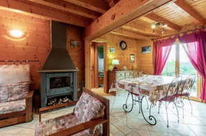 Chalet La Cabiotte : dans un petit village, au pied des Vosges Saônoises, vous séjournerez dans un charmant petit chalet de bois, typiquement franc-comtois. Nouvellement construit et parfaitement équipé, cet hébergement ambiance montagne saura vous satisfaire. Au rez-de-chaussée : cuisine, séjour/salon avec cheminée, salle d'eau, WC, 1 chambre (2 lits 1 personne). À l'étage : 1 chambre (1 lit 2 personnes). Accès internet en WIFI. écran LCD dans les chambres. Balançoire extérieure enfant. Couchage d'appoint 1 personne. CHARGES ÉLECTRICITÉ NON COMPRISES. Gîte de pêche.