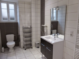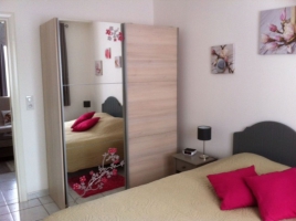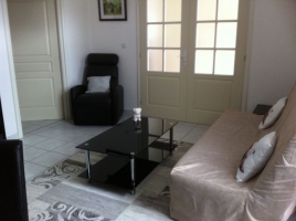 Dans villa de caractère avec parc, un grand F1 et deux grands F2 tout confort, rez-de-chaussée, et à l'étage. Proche des Thermes et commerces. Parking privatif. Animaux acceptés. Appartement de type F2, d'une surface de 55 mètres carrés, situé au rez-de-chaussée gauche de la maison, cet appartement comporte :- une entrée indépendante séparée du meublé, avec placard, meuble bas et grande glace. - une belle pièce à vivre avec canapé convertible, une télévision à écran plat, ouverte sur une cuisine équipée (plaque vitrocéramique, frigo avec compartiment congélateur), un coin repas avec une table et 4 chaises. - une chambre séparée avec 1 lit 2 places de 160x200, 2 tables de chevet et une armoire avec penderie et étagères. - une grande salle d'eau indépendante entièrement carrelée avec cabine de douche, lavabo et toilettes. Draps et serviettes de toilettes sont fournis sur demande avec supplément. Disponibilités en ligne sur le site internet de la villa Bellevue.