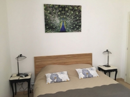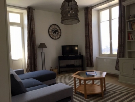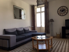 Dans villa de caractère avec parc, un grand F1 et deux grands F2 tout confort, rez-de-chaussée, et à l'étage. Proche des Thermes et commerces. Parking privatif. Animaux acceptés. Appartement de type F2, d'une surface de 55 mètres carrés, situé au premier étage droit de la maison. Cet appartement comporte :- une entrée- une belle pièce à vivre avec canapé convertible, une télévision à écran plat, ouverte sur une cuisine équipée (plaque vitrocéramique, frigo avec compartiment congélateur), un coin repas avec une table et 4 chaises. Cette pièce est ouverte sur 3 côtés de la maison avec une porte fenêtre avec balcon sur l'avant de la maison- une chambre séparée avec deux lits de 80x200 séparés, pouvant éventuellement être assemblés pour faire un lit de avec une commode et un placard/penderie- une grande salle d'eau indépendante entièrement carrelée avec cabine de douche, lavabo et toilettesDraps et serviettes de toilettes sont fournis sur demande avec supplément. Disponibilités en ligne sur le site internet de la villa Bellevue.