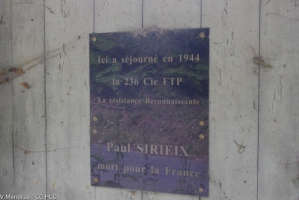 Avant Imbort, sur la porte d’une grange isolée sur la droite, remarquez la plaque en hommage à Paul Sirieix. Cette grange fut investie par des Résistants durant la Seconde Guerre, et servant de base de repli et camp d’entraînement à un détachement de la 236ème Compagnie des Francs Tireurs et Partisans (qui participa notamment à la libération d’Ussel).Au cours d’un entrainement au fusil mitrailleur, une erreur de manipulation de l’arme entraîna la mort accidentelle du résistant Paul Sirieix.