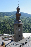 Voila bien un clocher visible et reconnaissable de loin ! Détruit pendant la Révolution, ce n'est qu'en 1824 qu'il retrouve une flèche à double bulbe, identique à l'ancienne. le second , "en oignon", est surmonté du globe dominé par la croix et le coq.A l'intérieur de l'édifice reconstruit à partir de 1732, la presque totalité du mobilier est endommagée en 1794 : l'église sert alors d'entrepôt à salpêtre jusqu'en 1800, pour fabriquer la poudre à canon ! Ce n'est qu'en 1840, que le sculpteur Pédrino réalise le nouveau le retable majeur : de part et d'autre du tableau central, copie de la Transfiguration du Christ, s'élèvent les statues de sainte Agathe et de saint François de Sales.Le coup d'oeil s'impose sur la chaire (ornée des quatre évangélistes et du Bon Pasteur) née sous le ciseau du sculpteur Duithe, de Beaufort, en 1856... et n'oubliez pas le retable du Rosaire, caractéristique de la période baroque.En 1876, on allonge l'édifice : une nouvelle tribune est créée, plus vaste que l'ancienne. Le portail baroque de 1735 est heureusement déplacé sur la nouvelle façade, où l'on place les statues de Moïse, d'Elie et du Sacré-CœurOuverte toute l'année de 9h à 19h en accès libre. Ce site fait partie du dispositif Escapades Baroques dans les Alpes.