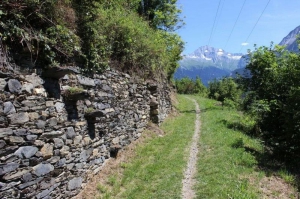 Le sentier des vignes orienté plein Sud regorge de vignes anciennes, phénomène surprenant en montagne, lié au climat chaud et sec de la Tarentaise. Peu de pluie et un vent chaud, le Foehn, favorisaient la culture des vignes jusque dans les années 1950 par les agriculteurs de la vallée de Bozel.Le vin produit en trop faible quantité n'était d'ailleurs pas vendu, il servait à la consommation personnelle des habitants. Sur les terroirs de Brides et Montagny, certains treilles sont toujours entretenues. Alors que vous surplombez le Doron de Bozel sur cet itinéraire, un joli point de vue se présente à vous.