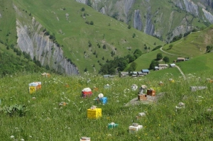 L'abeille noire (Apis mellifera mellifera) est une sous-espèce de l'abeille domestique. L'écotype de Savoie, adapté au climat et à la flore locale, est utilisé par les apiculteurs de la vallée. La création, en avril 2016, d'un Conservatoire de l'abeille noire dans la vallée des Encombres se traduit par la mise en place de ruchers de fécondation. Ceux-ci permettent aux jeunes reines de n'être fécondées que par des mâles de cet écotype. Vous pouvez apercevoir un rucher de fécondation, aux ruches de petite taille, à l'endroit où le sentier quitte la route des Encombres pour descendre vers les Priots.