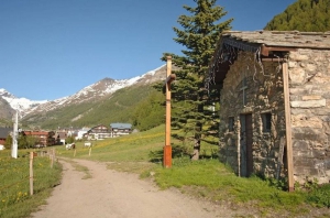 La croix de mission en mélèze, érigée en 1847 vous fera repérer la Chapelle Saint-Jean. Jadis, sa face arrière offrait un éperon maçonné (ouvrage de protection contre l’avalanche qui pouvait descendre de Solaise par la Combe Martin). Une avalanche touchant l’éperon se divisait, était ralentie et perdait de sa force destructrice. Cette chapelle construite à quelques 300 m au sud de l’église avait pour mission de protéger le village et ses habitants de l’avalanche. En 1790, quatre messes, payées 12 sols chacune, étaient célébrées par an. Elles étaient financées par un avalin émigré, marchand à Parme : Amédée Thovex. C’est à la Saint-Innocent (21 juillet) encore, deuxième patron de l’église de Val, que se déroulait une procession qui partait de l’église avec la châsse reliquaire. Ce long cortège prenait la route du Laisinant, tournait vers le Rogoney pour revenir vers la chapelle Saint-Jean où se déroulait une bénédiction puis rentrait au village : c’était un jour de fête ! Qui était Saint-Jean ? Figure emblématique du nouveau testament, présent dans de nombreuses scènes, Saint-Jean, disciple bien aimé du Christ, est toujours représenté dans l’iconographie de l’Église d’Occident sous des traits juvéniles.