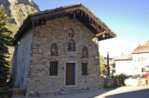 Cette chapelle est mentionnée lors de la tournée pastorale de 1633. Les niches abritent Saint Roch, Jeanne d’arc et le curé d’Ars. Les anciennes statues ont été volées. En 1790, un certain Boch avocat à Turin, fait une donation pour que soient célébrées 51 messes par an, soit une chaque vendredi. Que redoutait-il pour la communauté et pour lui-même ? Cette chapelle est encore utilisée de nos jours comme chapelle ardente. Saint-Roch est fêté le 16 août. C’est un ermite qui passe son temps en pèlerinages. Souvent associé à Saint-Sébastien, Saint-Roch est un saint antipesteux. La diffusion de son culte en Savoie se fait à partir du milieu du 15e siècle. Il se répandra rapidement au cours des 16e et 17e siècles, périodes où la peste fait des ravages. Dans nos régions de montagnes, les colporteurs, muletiers, marchands et contrebandiers étaient légion. Rien de surprenant à ce que la maladie, transmise par le rat, ait touché régulièrement la communauté : une puce porteuse du bacille qui sautait dans un revers de manteau et la maladie était là…