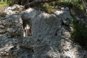 Vous rencontrerez 3 oratoires dédiés à Saint-Antoine, ermite, protecteur des ânes et des mulets. Le 1er oratoire, date de 1973, année de création de la route. Le second date a priori de l'occupation italienne, il est déjà connu sur la mappe sarde en 1728, et fut reconstruit en 2005. Le troisième oratoire est une anfractuosité du rocher, il n'a pas été daté. Saint-Antoine est reconnaissable à ses attributs : une clarine (cloche à bétail) et le Tau des Antonins (croix en forme de T).