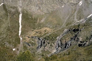 Provenant de la fonte saisonnière du glacier de Chavière, l'eau s'écoule doucement avant de jaillir au-dessus des parois sur une hauteur de presque 100 m. Après un court moment de répit où le ruisseau serpente au milieu d'une végétation verdoyante, avant de  plonger de nouveau pour une succession de chutes, moins hautes mais tout aussi jolies. Il est assez surprenant d’observer les variations de couleur et de débit dans une même journée.