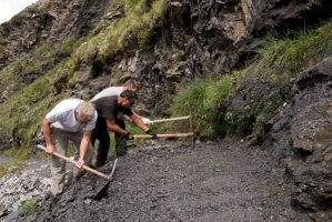Une dizaine d'ouvriers saisonniers sont à l’œuvre pour entretenir les quelque 550 km de sentier du cœur du Parc de la Vanoise. La zone que vous traversez fait régulièrement l'objet de travaux, pour gérer les ravinements, écoulements d'eau et piétinements hors sentier. Les cicatrisations par la végétation ont 20 ans ! Merci d'aider la végétation en restant sur les sentiers.