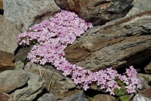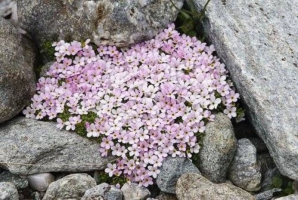 Dès le retrait de la neige, les éboulis et moraines se parent de coussins fleuris, blancs ou roses : l'androsace alpine (Androsace alpina) est une plante rare et protégée, endémique de l'arc alpin. Elle est un exemple remarquable d'adaptation au froid intense. Son record altitudinal est de 3350 m, observé à Bessans ! Les prospections des gardes-moniteurs du Parc national de la Vanoise ont permis de localiser l'espèce sur tous les territoires potentiels… et de répertorier 50 % des populations connues en France.