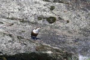 Au bord du ruisseau, on entend un « zit » bref et strident. Un oiseau de la taille d'un merle, marron et blanc file au-dessus de l'eau comme une flèche. Le cincle plongeur (Cinclus cinclus) est un indicateur de la bonne qualité de l'eau. Il aime les torrents de montagne à l'eau pure où il trouve sa nourriture : larves d'insectes, mollusques ou œufs de poisson qu'il attrape en plongeant sous l'eau. Très à l'aise dans les torrents, il peut nager à la surface ou courir au fond de la rivière, même à contre courant ! C'est un oiseau très vif, qui défend activement « son » tronçon de torrent.