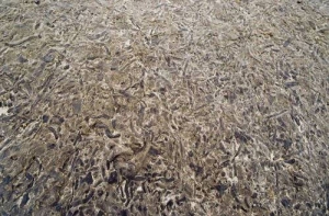 À proximité du lac Blanc, on peut voir des calcaires vermiculés, datant du Trias (- 252 millions d'années à - 201 millions d'années). Ces roches d'apparence plutôt jaunâtre sont parcourues de traces bleutées. Ce sont les traces fossiles de terriers de vers marins.