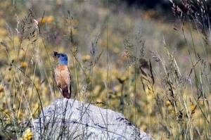 Cet oiseau aux couleurs vives ne s'est pas échappé d'une jardinerie. Même si le monticole de roche passe l'hiver en Afrique subsaharienne, il fréquente régulièrement les versants rocheux, secs et ensoleillés de nos montagnes pour venir se reproduire. S'il peut se nourrir de petits lézards et de graines ou fruits, il profitera surtout de l'abondance d'insectes variés. À la fin de l'été il regagnera ses zones d'hivernage. Le monticole de roche est un oiseau en régression en France depuis plusieurs année avec environ 1500 couples nicheurs seulement pour la France. Ce serait donc un événement que de l'observer, ouvrez l'œil.