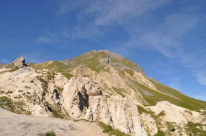 Après le Petit Col des Encombres, le sentier s’élève au milieu des affleurements et des entonnoirs (dolines) de gypse. Le versant oriental de la montagne est tapissé, sur une bonne moitié de sa hauteur, par une bande gypseuse qui donne un relief tourmenté, pittoresque lorsqu'on la traverse, avec des pitons ruiniformes (cargneules) séparés par des dépressions de dissolution des gypses. Cette géologie tout à fait particulière est facilement identifiable par sa couleur blanche, d’aspect mat, finement cristalline et tendre. Elle est constituée en majeure partie de sulfate de calcium. Son goût salé est très apprécié des bouquetins ; ce qui explique en partie leur importante colonisation sur ce secteur.