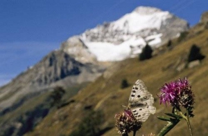 Ce papillon de jour protégé est un des plus grands que vous pourrez rencontrer en Vanoise. Il se caractérise par ses ocelles rouges sur le fond blanc et noir des ailes postérieures, mais reste difficile à différencier du petit apollon pour les non-initiés. Ses chenilles se nourrissent sur les orpins et joubarbes très nombreuses autour de Notre-Dame des Vernettes.