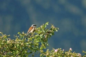 Cette jolie pie-grièche aux couleurs contrastées visite nos montagnes à la belle saison. Elle tient son appellation de son habitude d'"écorcher" les gros insectes qu'elle capture en les plantant sur des buissons épineux, voire sur des fils de fer barbelé. Elle se montre facilement lorsqu'elle chasse depuis un affût, branche morte ou piquet.