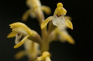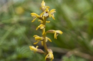 La racine de corail (Corallorhiza trifida) est une discrète orchidée des sous-bois que vous aurez peut être la chance de croiser si vous êtes très attentif car elle ne mesure que 6 à 10 cm de hauteur. Elle est plutôt rare en Vanoise et ne jouit d'aucun statut de protection.