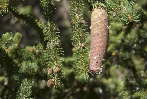 L’épicéa s’épanouit sur ce versant d’ubac, dominant les feuillus de l’étage montagnard. Souvent appelé « sapin », à tort, il est aisément identifiable à ses cônes qui pendent sous les branches, aux aiguilles disposées tout autour des rameaux, piquantes au toucher, alors que le sapin se fait souple et doux sous la main. Le tronc de l’épicéa est parfois foré par les pics, à la recherche de larves ou pour y loger leur couvée.