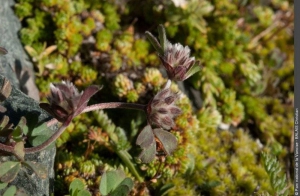 Cette plante protégée affectionne les sols rocailleux et siliceux des moraines. Rare en France, elle n’est connue que dans 4 communes de Vanoise dont Villaroger. Une petite station se situe en rive gauche du torrent, à une dizaine de mètres au nord de la passerelle. Pour le voir, n’hésitez pas à vous mettre à 4 pattes car, si ce trèfle entièrement recouvert de poils est facilement reconnaissable à son aspect vert-grisâtre, ses inflorescences globuleuses ne dépassent guère 1 cm de diamètre