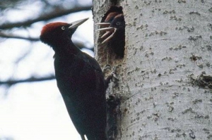 Quoique farouche, le plus grand des pics européens ne passe guère inaperçu en raison de ses cris : des « kru kru kru » en vol souvent suivis d'un « ptieuh » puissant lorsqu'il se pose. Noir, de la taille d'une corneille, il possède une calotte rouge sur tout le crâne chez le mâle et limitée à la nuque chez la femelle. Recherchant la présence de vieux arbres pour y creuser son nid, son rôle est déterminant pour la chouette de Tengmalm. Cette chouette forestière boréale ne pouvant pas creuser elle-même ses loges dans le bois, elle doit donc utiliser les anciennes loges réalisées par le pic noir.