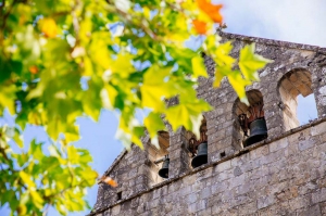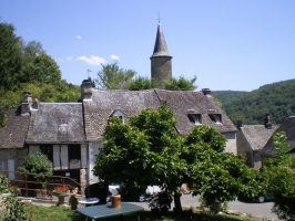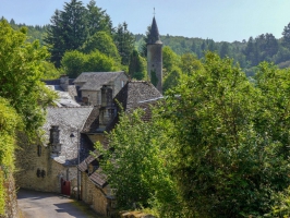 Le bourg, cerné par le méandre du Doustre, est composé de la Roche-Haute à la limite du plateau et de la Roche Basse, 100 m plus bas, construite à flanc de collines. Caractéristiques de la Roche-Basse, connue à partir du IXe siècle, des sentiers étroits appelés "courrijoux" permettaient d'accéder aux cultures en terrasses.Depuis la petite place et sa fontaine la Tour Canillac témoigne de l'empreinte médiévale du site.