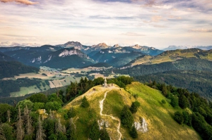 Un panorama à 360° du lac Léman au Mont Blanc...Vous l'ignorez peut-être, mais tout en haut du Forchat se dressait autrefois une forteresse, célèbre durant les guerres du 14ème siècle entre la Maison de Savoie et les dauphins du Faucigny. Du fait de sa situation, il était parfaitement installé pour surveiller tous les environs.Maintenant c'est Saint François de Sales qui veillent sur les alentours..