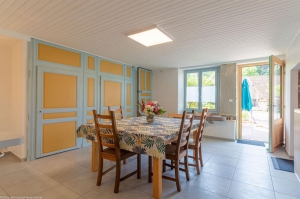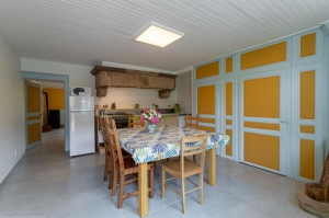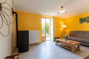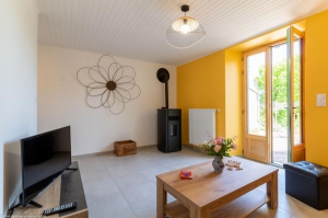 Rez-de-chaussée : séjour avec cuisine intégrée et salle à manger, salon (canapé convertible pouvant servir de couchage supplémentaire) avec poêle à pellets et accès sur le jardin. Salle d'eau et WC indépendant.A l'étage : une chambre avec un lit 160 et une chambre avec 3 lits 90 et salle d'eau avec WC attenante.Parking, garage, et buanderie.Une terrasse devant la maison et une terrasse sur l'arrière avec jardin clos de 800 m² ( muret + grillage 1,50 m).Animal accepté (pas à l'étage). Electricité et chauffage par chaudière inclus. Lits faits à l'arrivée. Ménage de fin de séjour inclus dans le prix de la location.Charges et suppléments :Location linge de toilette: 5€ /unité pour le séjour.Pellets : 6 € le sac de 15 kg.Supplément animal: 30€ par animal pour le séjour et 40€ si 2 animauxCaution: particuliers et entreprises: 300€ animal: 100€Equipements:Intérieur: Télévision, poêle à pellets, micro-ondes, lave-vaisselle, lave-linge.Extérieur: Jardin clos ,barbecue, salon de jardin, table de ping-pong, vélos.Garage privé, terrasse, parking privé.Services:Wifi, équipement bébé sur demande, draps fournis,Chauffage central et électricité inclus