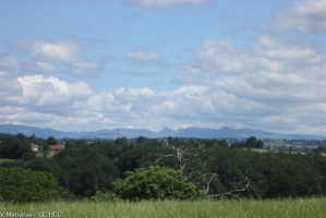 Au-delà de la Dordogne, les Monts du Cantal se présentent à nous à plusieurs reprises au cours de cette randonnée. Ce massif est en fait le vestige d’un stratovolcan né il y a 13 millions d’années, le plus grand d’Europe, démantelé par des phénomènes d’effondrement et d’érosion glaciaire.