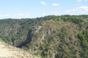 Ce belvédère offre une magnifique vue sur la confluence de la Diège et de la Dordogne et le site de St-Nazaire.Cet endroit tire son nom de la légende du saint qui aurait chassé le diable du lieu.Un pèlerinage en son honneur était organisé par un chemin de croix. Lors de la cérémonie, les habitants de Roche se groupaient sur ce belvédère, ceux du Cantal sur la bordure du plateau sur la bordure du plateau. Les 3 groupes chantaient en même temps et les échos se prolongeaient dans la vallée.