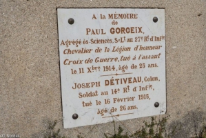 Stèle en hommage à deux soldats de la Grande Guerre de 1914-1918.