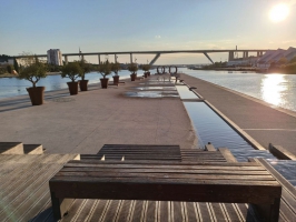 C'est un magnifique site aménagé avec des jets d'eau et des fontaines propices à la détente et la flânerie. Vous pourrez également contempler la sculpture géante de Bernar Venet qui trône en figure de proue vers le viaduc. Nommée « 219.5° Arc x 15 », elle a été installée en 2019. Les dernières villes à avoir pu exposer de telles pièces ne sont autres que New-York, San Francisco, Pékin, Berlin, Paris ou encore Tokyo.Bernar Venet est un artiste qui s’inscrit dans le mouvement de l’art conceptuel, dans lequel on tente d’exclure les interprétations, ce sont des œuvres parlent d’elles-mêmes. Fabriquées en acier corten, ces 3 arcs ont été fabriqués en Hongrie dans l’usine de Nagykőrös. Bernar Venet est aussi connu pour ses Angles et ses Lignes indéterminées. L’œuvre a été prêtée par l’artiste à la ville de Martigues qui a eu l’opportunité de la garder en attendant qu’une autre ville ne la réclame. Elle permet également d’observer le Calen.