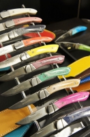 Travaillant dans la pure tradition coutelière française, EUSTACHE propose toute une collection de couteaux régionaux qui s’inspire du terroir ou du patrimoine culturel avec des mouches spécifiques à chaque région.Le Corrèze et sa feuille de châtaignier, le Breizh Kontell et son hermine bretonne, l’Occitan et sa croix occitane ainsi que l’Elsass et sa cigogne, chacun décliné en pluieurs modèles mais également en couteaux de table. Les manches sont réalisés dans de nombreuses essences de bois ou en matières naturelles. Tous ces produits et de nombreux autres sont commercialisés dans la boutique de Collonges la Rouge.