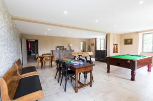 Un lieu d'exception pour vos vacances, une maison de partage ! Dans un hameau, où le calme et les grands espaces règnent, découvrez le charme et le standing haut de gamme du domaine du gîte de la Tourelle ! Bienvenue dans cette ancienne maison familiale de caractère du 12ème siècle, bordée par un ruisseau.Le domaine a su garder son authenticité grâce à la rénovation de très grande qualité qui a mis en valeur le caractère de cette magnifique demeure : le donjon qui accueille le sublime escalier en colimaçon en pierres de taille, la majestueuse charpente d'une chambre, les remarquables cheminées décoratives, les volumes et la luminosité des pièces de vie...Ici tout à été pensé pour que votre séjour soit inoubliable, modernité et confort sont au rendez-vous.Ici on s'ennuie pas...on se détend, on s'amuse! Une salle de jeux avec billard, baby-foot, jeux de fléchettes, jeux de sociétés, un bar... Un espace bien-être privé et accès à volonté, avec spa, sauna, espace fitness, une piscine couverte chauffée, avec accès à la terrasse semi-couverte et cuisine d'été (plancha), balançoire, terrain de pétanque...et pour les repas familiaux, une grande cuisine avec équipements professionnels est à votre disposition. Terrain partiellement clos. Chauffage au sol et radiateurs électriques (2ème étage). À l'étage: salon avec TV écran plat, internet wifi/salle à manger, salle de jeux, 1 chambre 2 personnes avec salle d'eau et wc privatifs, 1 chambre 2 personnes avec salle d'eau et wc privatifs, 1 WC, 1 bureau. Au deuxième étage: 1 chambre 2 personnes avec salle d'eau et wc privatifs, 1 chambre 3 personnes avec salle d'eau et wc privatifs, 1 grande chambre de 6 personnes, salle d'eau et wc, un espace détente avec TV, canapé. Ascenseur. Le linge de lit et de toilette sont fournis. Charges comprises. Supplément animal 50€/séjour -