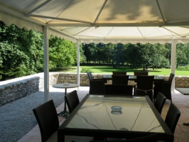 Sous son plafond à la française, entourés de ses boiseries d'époque, cuisine authentique élaborée au gré des produits de saison, tout en profitant de la vue sur le Saône et le parc. Des primeurs du printemps aux gibiers de l'automne, large choix de la carte des vins, faisant la part belle aux vins du Jura et de Bourgogne, mais proposant aussi un large choix des vignobles français. Salons pour repas de famille comme la salle chinoise et la salle des gardes. Bar et salons particuliers pour repas en privé Très beau cadre en bordure de Saône. Menus et carte présentés midi et soir et élaborés selon les produits du marché. Possibilité de séminaire.